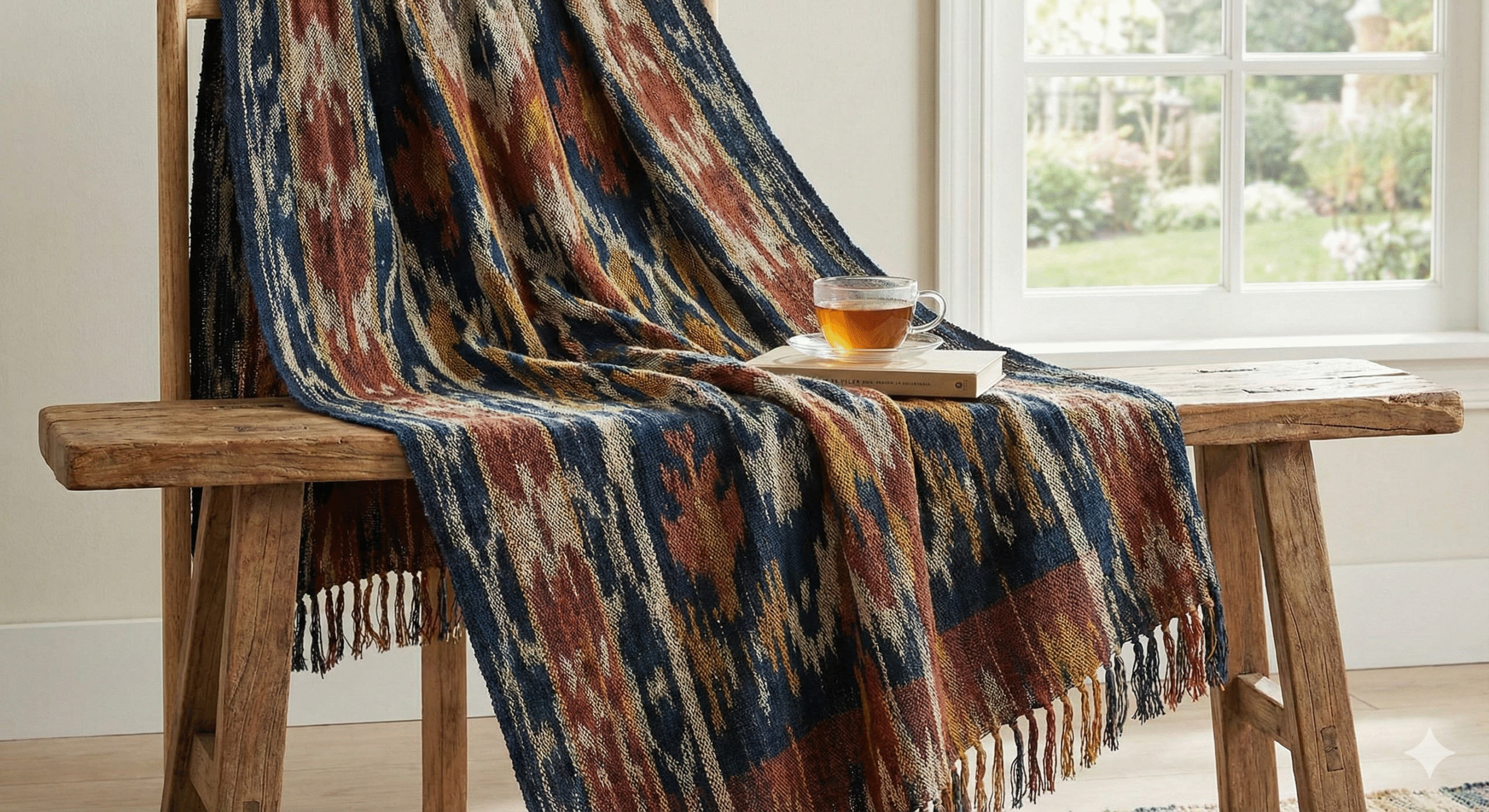 Stay warm and cozy with this handwoven tenun blanket, featuring intricate patterns and soft textures.
